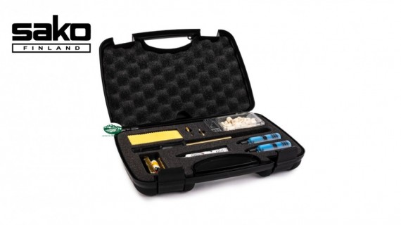 Kit pulizia valigetta originale Sako cal.30/7,62,contiene bacchetta in 5 pezzi,scovoli,portafeltrini,scatola feltrini,olio,grasso e pezzuole.