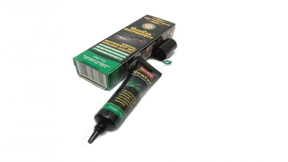 Con l’aggiunta di uno speciale additivo ceramico e un ampio intervallo di temperature da -50 ° C a +150 ° C, Guncer Gun Grease offre la massima protezione da usura e corrosione per i componenti trattati. Per la lubrificazione di tutte le audizioni tribologiche, quali parapetti di culatta, rulli, fermi, bloccaggio, alette, cerniera, bulloni e come dispositivo di raccordo di connessione avvitato e appuntato. Ideale anche come lubrificante con raccordo filettato. È neutro nei confronti di plastica, vernice, legno e doratura. Il grasso speciale bianco inodore è privo di resina e acido e non contiene PTFE o silicone.Confezione da 10gr