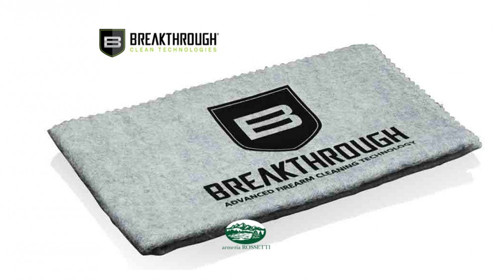 Panno in silicone BREAKTHROUGH per pulizia armi da fuoco, attrezzature sportive e strumenti di precisione. Questo panno è impregnato di puro silicone e quindi confezionato in una pratica busta richiudibile così da rimanere pulito e umido per il prossimo utilizzo. Il panno garantisce una rimozione sicura di polvere e imppronte digitali corrosive; lascia un film protettivo brillante e duraturo. Ideale per superfici in metallo, legno e plastica.