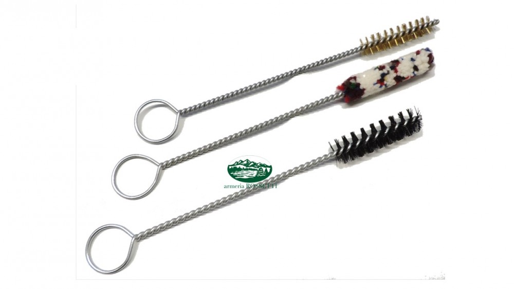 Kit pulizia per pistola , tre scovoli con asta fissa per cal.9mm/38/357 .