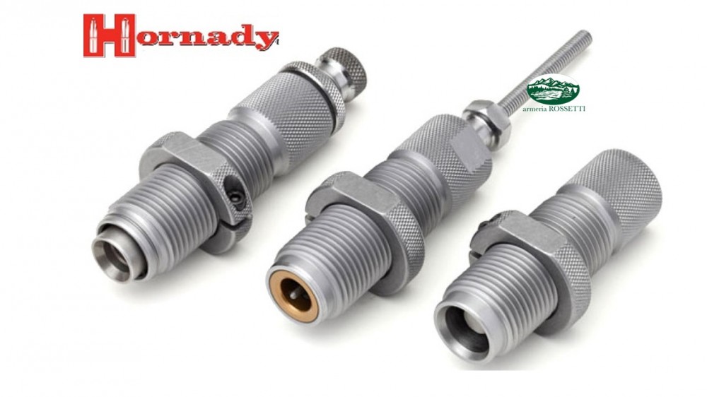 Questo Hornady 3-Die Set comprende: Seating die, Expanding die, Sizing die.