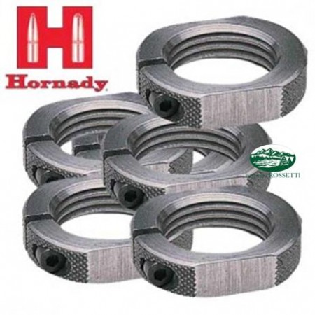 Hornady LOCK Rings consente di effettuare regolazioni su tutti i dies con filettatura 7/8 "-14 Il punto di forza che rende questa ghiera la più¹ venduta in assoluto, la vite fa tiraggio direttamente sulla ghiera stessa e quindi non rischia di danneggiare il filetto e tenendo il dies perfettamente in asse,compatibile su tutti i dies RCBS HORNADY LEE.Confezione da 6 pezzi.