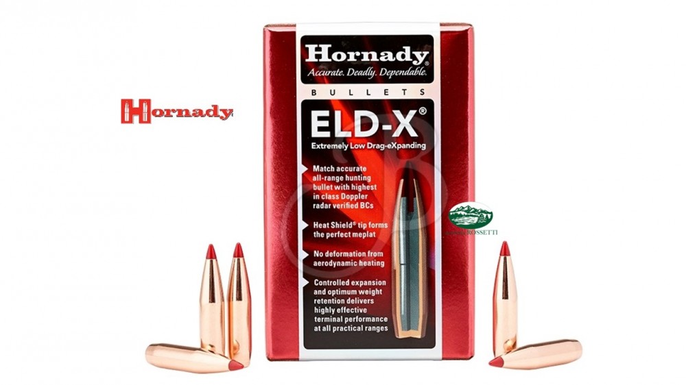 La palla ELD-X® (Extremely Low Drag - eXpanding) è nata per la caccia ALL-RANGE, tecnologicamente avanzata e accurata, con coefficienti balistici di altissima qualità e un'espansione costante e controllata a TUTTE le distanze di caccia praticabili. La Palla ELD-X® fornisce una profonda penetrazione e un ampie cavità grazie all'affungamento e trattenendo dall' 85% al 90% del peso della palla.