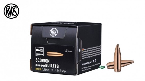 Palle da carabina cal.7.62mm (30)175gr SCORION. MATCH Confezione da 50 pezzi.