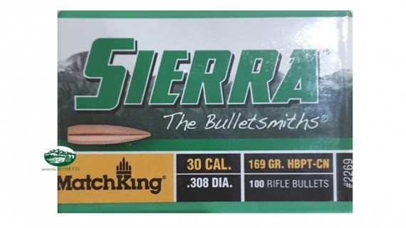 Sierra palle cal.308 (30)mm , 169gr. HPBT MATCHKING CLOSE NOSE (CN) , confezione da 100 pezzi