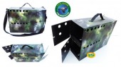 Cassetta porta 4 piccioni con vani separati, dotata di due sportelli con chiusura a chiavistello sulle estremità. Realizzato in materiale plastico leggerissimo ma estremamente resistente e facile da pulire ( si raccomanda di non utilizzare solventi ). Dotata di fori di areazione, alloggio per beverini, tracolla per il trasporto, comoda per lunghi tragitti a piedi verso il luogo di caccia. Per una miglior igiene e pulizia si consiglia all'interno l'uso di lettiera per gatti.