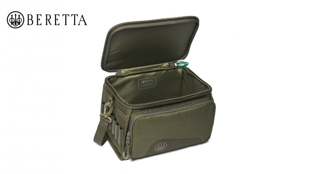 Borsa porta cartucce per contenere fino a 6 scatole da 25 cartucce con 3 tasche esterne per strozzatori, tappi e altri accessori.