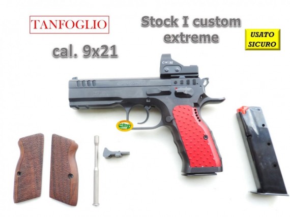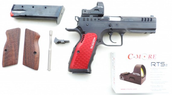 straordinaria occasione per il tiro, pistola customizzata con componenti della serie extreme, dallo scatto alleggerito all'asta guidamolla in Titanio, guancette high grip in alluminio, dotata di mirino olografico C-More RTS.