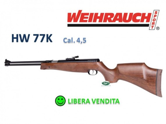 ll modello HW 77 K (kurz = corto) differisce dal modello HW 77 solo per la lunghezza della canna. che in questa versione è più corta di 10 centimetri. In questa maniera i pesi e il bilanciamento della carabina diventano completamente differenti. La scelta di una o l’altra versione è solo questione di gusti personali. il modello corto non è affatto. come si potrebbe erroneamente pensare. una versione “povera” e meno precisa della versione grande. Le carabine ad aria compressa Weihrauch rappresentano attualmente il miglior rapporto qualità prezzo attualmente sul mercato. Lo scatto del grilletto è la parte che rende ogni carabina Weihrauch tra le migliori sul mercato. Primo e secondo tempo molto nitidi e vite di regolazione peso dello scatto. Le tacche di mira sono regolabili in alzo e deriva.