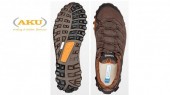 Calzatura leggera, versatile e traspirante, per utilizzo dinamico su terreni di media difficoltà. La tomaia è composta da due strutture: una esterna in scamosciato articolata da elementi indipendenti che avvolgono il piede in modo anatomico; una interna in air mesh con avvolgimento a lembi sovrapposti per assecondare l’anatomia del piede. La fodera in Gore-Tex® è di due tipologie: una elastica per la zona del collo-piede e una più protettiva per il resto della fodera. La costruzione asimmetrica della suola e tomaia con l’esclusiva tecnologia AKU Elica Natural Stride System garantisce un’ottimale distribuzione del carico sulla superficie plantare e il miglioramento del meccanismo di rullata. Il battistrada AKU con speciale mescola Tenuta garantisce un’eccellente aderenza.