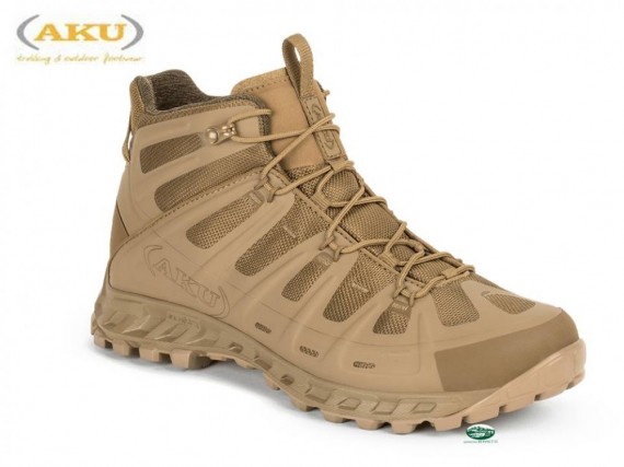 Calzatura progettata per le forze d’intervento rapido e attività tattiche, dinamiche e veloci, perfetta per utilizzi leggeri, per muoversi velocemente in totale comfort. Massima leggerezza, traspirabilità e supporto dinamico espresso da suola e tomaia, quest’ultima dotata di nervature sottomesse alla protezione in PU che elimina le cuciture. Il corpo sottopiede – suola – battistrada è sviluppato con tecnologia esclusiva AKU Elica Natural Stride System per favorire l’efficienza biodinamica. Il battistrada è Vibram® Selvatica Megagrip con una ottima superficie di contatto con il terreno per una migliore trazione a 360 gradi. Plantare OrthoLite® traspirante, con un ottimo assorbimento degli urti.