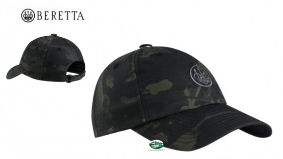 Cappellino in cotone regolabile con disegno camo black e logo Beretta ricamato.