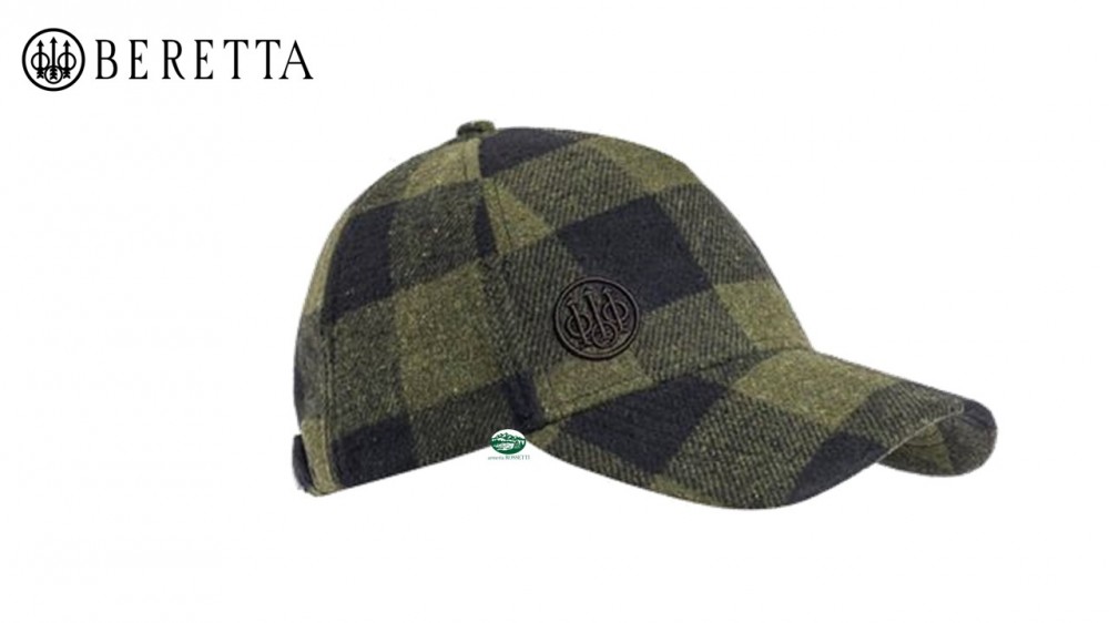 Cappellino quadro verde e nero, unisex in misto lana e poliestere.Regolabile con fibbia metallica.