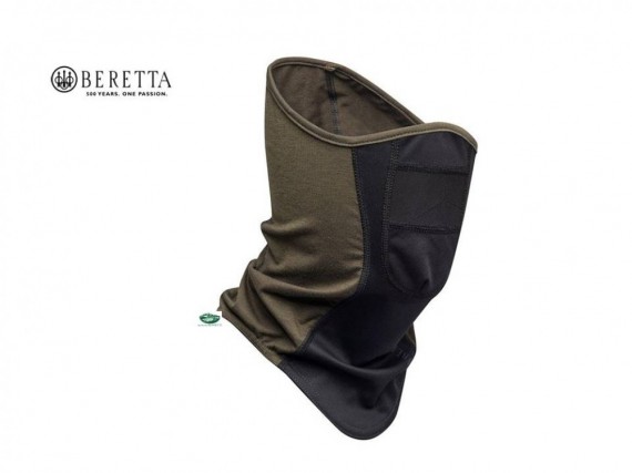 Scaldacollo Neckwarmer verde realizzato in tessuto di lana e poliestere con rete nella parte frontale per permettere una comoda respirazione