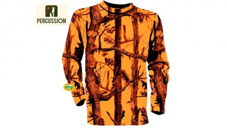 T-shirt girocollo maniche lunghe, arancione fluorescente Camo 100% polyester alveolare .