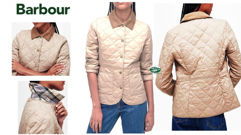 La giacca trapuntata Barbour Deveron presenta un colletto in velluto a costine e una fodera femminile a contrasto. È provvista di due pratiche tasche applicate sul davanti ed è finemente rifinita con il logo Barbour ricamato per un tocco di autenticità.