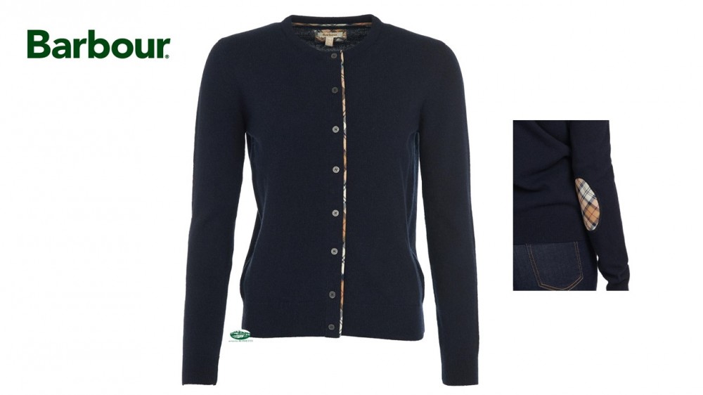 Cardigan donna blu,misto lana,con inserti in tartan e toppe sul gomito,in tessuto.Vestibilità morbida