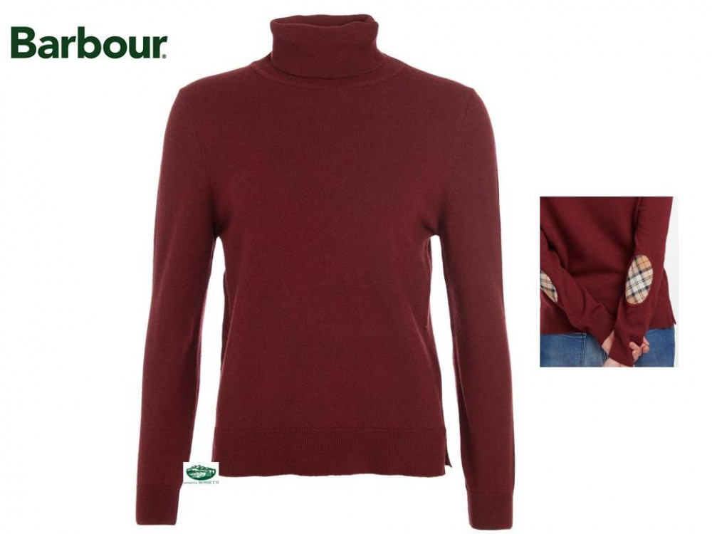 Dolcevita donna bordeaux,misto lana,con inserti in tartan e toppe sul gomito,in tessuto,spacchetti laterali.Vestibilità morbida