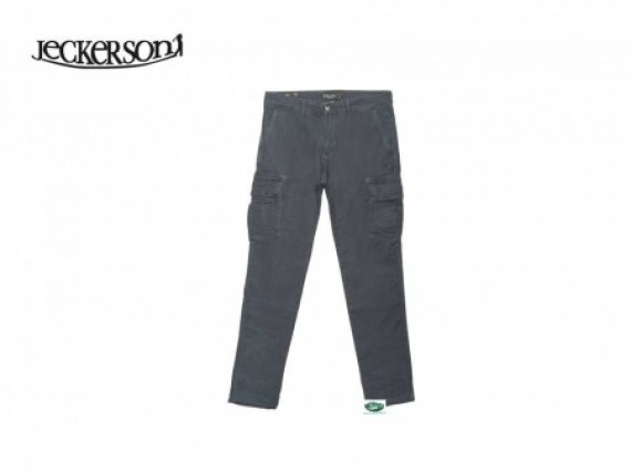 Pantalone trama operata cargo con tasconi, senza toppa,chiusura con cerniera e bottone in vita.