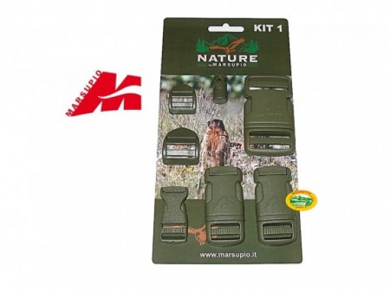 Confezione completa di fibbie e accessori di ricambio per zaini.