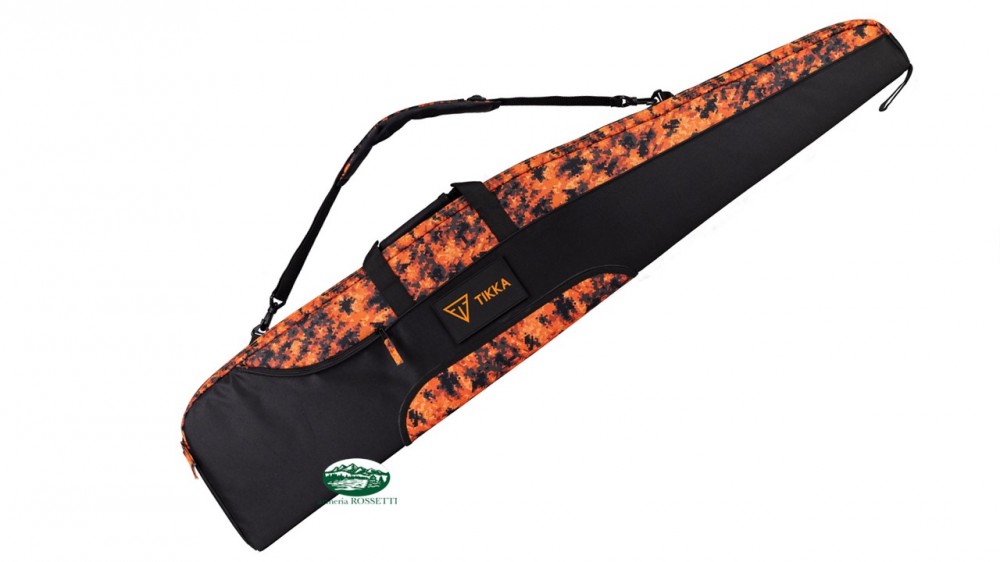 Fodero imbottito originale Sako e Tikka compatibile con tutte le loro carabine, in colorazione camo digital arancio e nero. Patch attaccata con velcro, nella confezione sono incluse due patch: una con logo Sako ricamato bianco e una con logo Tikka ricamato arancio (le patch possono inoltre essere rimosse e sostituite con altre)