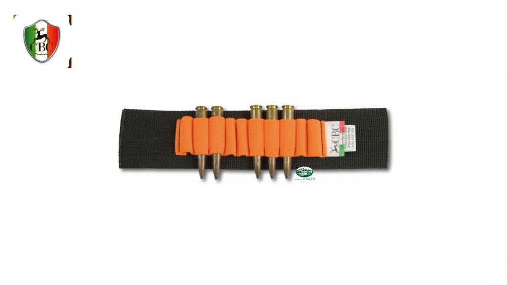 Cartuccera in nylon poliammide alta tenacità, elastico extra strong. passante multicalibro a 10 celle per carabina 26 cm.
