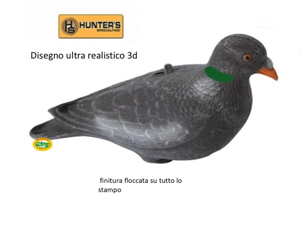 Lo stampo per colombacci più realistico sul mercato. Floccato su tutta la superficie, antiriflesso, in polipropilene super resistente. Dotato di innesto e picchetto in plastica dura, nonchè di gancio per attacco sospeso.