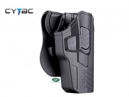 Progettato per resistere alle condizioni operative più difficili, Cytac® Holster è un'apparecchiatura ideale per uso militare, forze dell'ordine o protezione personale. Con un pulsante di sgancio rapido / blocco rapido, l'intero meccanismo protegge l'arma in modo sicuro e consente ai tiratori di fondersi facilmente e facilmente.