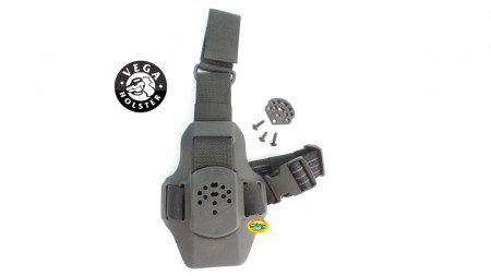 Kit cosciale in polimero stampato in termoformatura . Forma compatta con singola fascia cosciale in elastico con binari antiscivolo . Attacco a cintura in nastro rinforzato con speciale fibbia rotativa . Foderato in materiale antiscivolo per una maggiore tenuta .