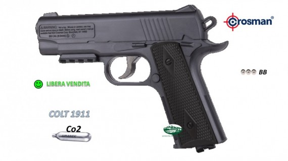 PISTOLA CROSMAN COLT 1911BB CAL. 4,5 AD ARIA COMPRESSA DI LIBERA VENDITA C.N. 561