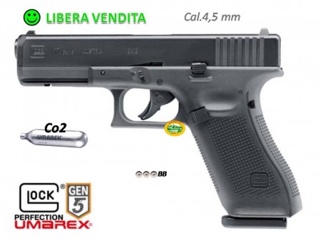 L'originale è una pistola di servizio per molti corpi di polizia in tutto il mondo, la Glock 17 Gen5 a CO2 di Umarex è una replica fedele in tutti i suoi particolari,viene fornita con un caricatotre per BB da 4,5 mm. Dispone inoltre di dorsalini intercambiabili che ne consentono la personalizzazione per qualsiasi tiratore .Umarex Glock 17 CO2 non è stata fatta per essere conservata in una teca. Con il suo carrello in metallo pesante blowback la Glock 17 promette ore di divertimento .