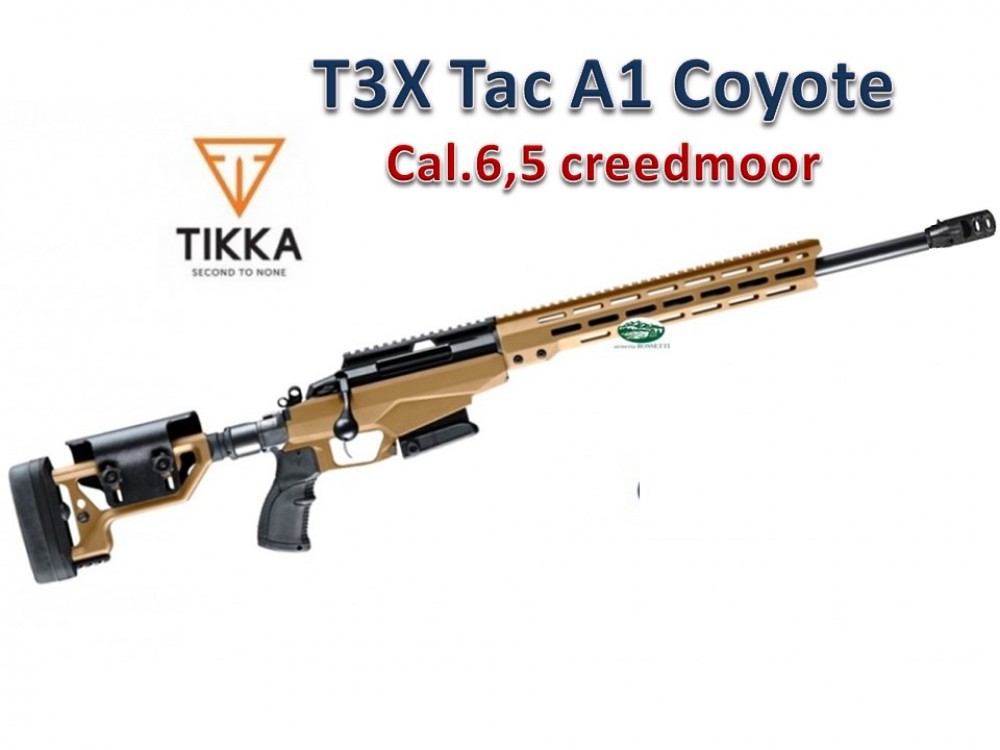 Il Tikka T3x TAC A1 è interamente modulare e, proprio per questo, in grado di soddisfare tutti i requisiti operativi. La cassa con telaio in alluminio è compatibile con la maggior parte delle aste tipo AR, delle impugnature a pistola e delle calciature. Presenta un calciolo pieghevole con poggiaguancia e corsa del grilletto regolabili. La volata è filettata per consentire il fissaggio del rompifiamma e/o dei silenziatori.
