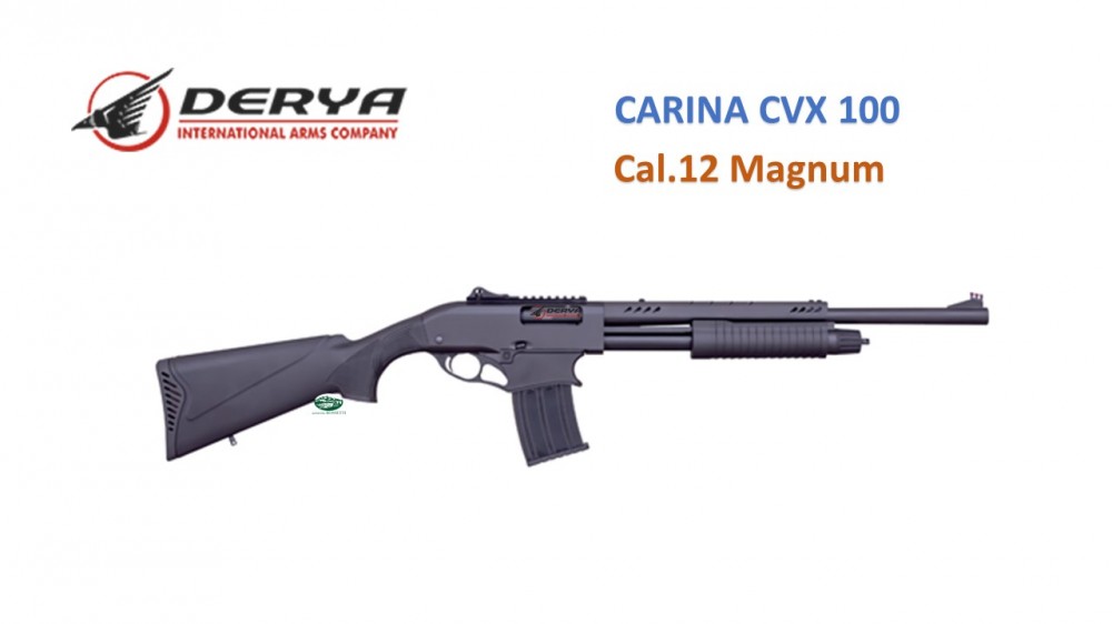 Il CVX è il fucile a pompa Derya cal. 12/76 con caricatore prismatico. Carcassa in alluminio con slitta picatinny, calcio fisso e astina in polimero, canna da 40 cilindrica con ghiera protettiva, caricatori in dotazione: 5+1, 10+1,due strozzatori in dotazione