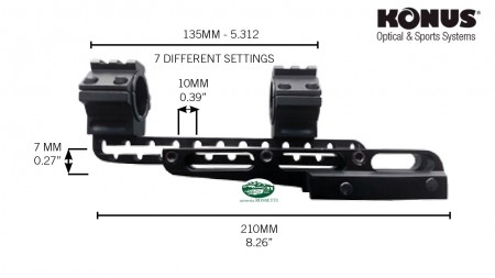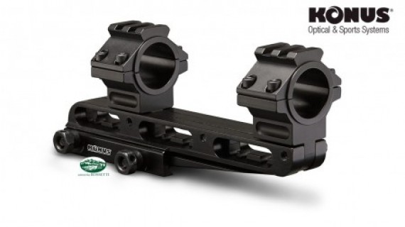 Una montatura veramente universale che è completamente regolabile sia in altezza che in lunghezza. Va bene sia su slitte Weaver che Picatinny e permette anche il posizionamento di ulteriori accessori nella parte superiore. Come ulteriore caratteristica vincente, può essere usata sia con ottiche diametro 30 mm che da un pollice, semplicemente aggiungendo o rimuovendo gli anelli interni.