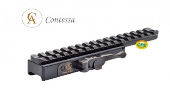 Base Picatinny a sgancio rapido lunga 60 mm, perfetta per tutti i punti rossi o mirini olografici predisposti per slitte picatinny, idonea al montaggio di visori notturni. Richiede la slitta interfaccia inferiore Contessa, specifica per la vostra arma.