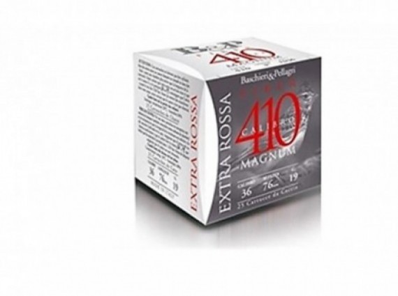 Cartuccia in calibro 410 con borraggio in feltro e couvette in plastica, per assicurare la perfetta tenuta dei gas e un rendimento ottimale di rosata .