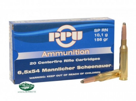 Munizioni cal.6,5x54R Mannlicher - SP RN - 156gr - Confezione da 20 pezzi.