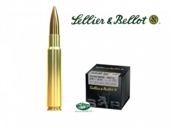 Munizioni cal.7,5x55 SWISS - FMJ - 174gr - confezione da 50 pezzi.