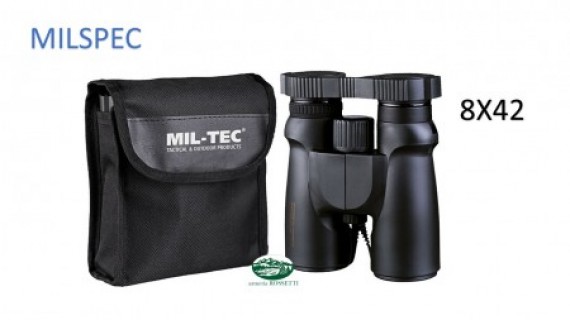 Binocolo 8x42 con fine regolazione diottrica realizzato da Mil-Tec completo di copriobiettivo, copertura oculare, custodia waterproof e tracolla regolabile.