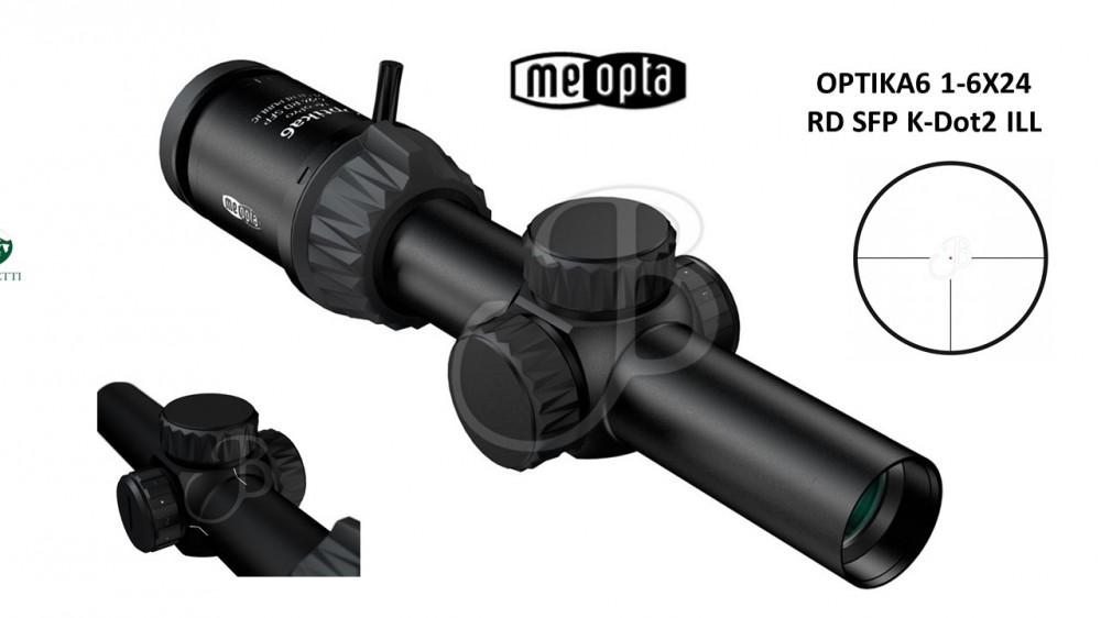Meopta Optika6 1-6x24 è un cannocchiale studiato specificatamente per la caccia di medio raggio per tiri rapidi e le competizioni sportive. L'escursione dell'ingrnadimento da 1x a 6x consente ingaggi molto rapidi a 1x e tiri precisi a 6x su bersagli più lontani. I cannocchiali sono disponibili con reticolo sul secondo piano focale (SFP). La regolazione dell'alzo e deriva è 0,5MOA. Disponibile con reticoli standard, illuminati o DichroTech in varie configurazioni per affrontare le sfide di qualsiasi situazione di tiro.