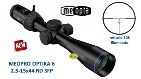 Un vero cannocchiale da caccia, Optika6 da 2,5-15x44 è dotato di copri torrette di elevazione per evitare regolazioni indesiderate. La regolazione in elevazione e deriva è di 0,25 MOA per clic. Il reticolo è sul secondo piano focale (SFP), illuminato e DichroTech e viene fornito di serie con la leva sulla ghiera dell'ingrandimento per una più rapida e precisa regolazione. la torretat per la regolazione del parallasse è laterale e consente al tiratore di avere una maggiore precisione per tiri a lunga distanza.