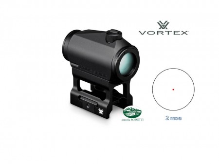 Punto rosso Crossfire super leggero, ultracompatto, incredibilmente resistente per slitta weaver. Dot da 2 moa con 11 gradi di regolazione della luminosità. In aggiunta attacco weaver alto 25mm.