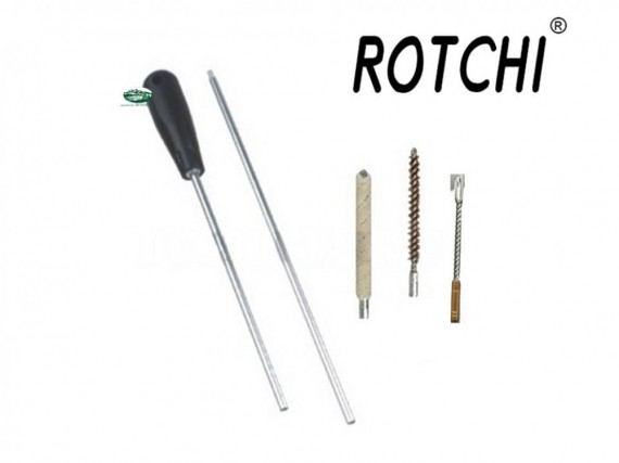 Kit completo di scovolo in cotone, bronzo e plastica in scatola di plastica resistente.