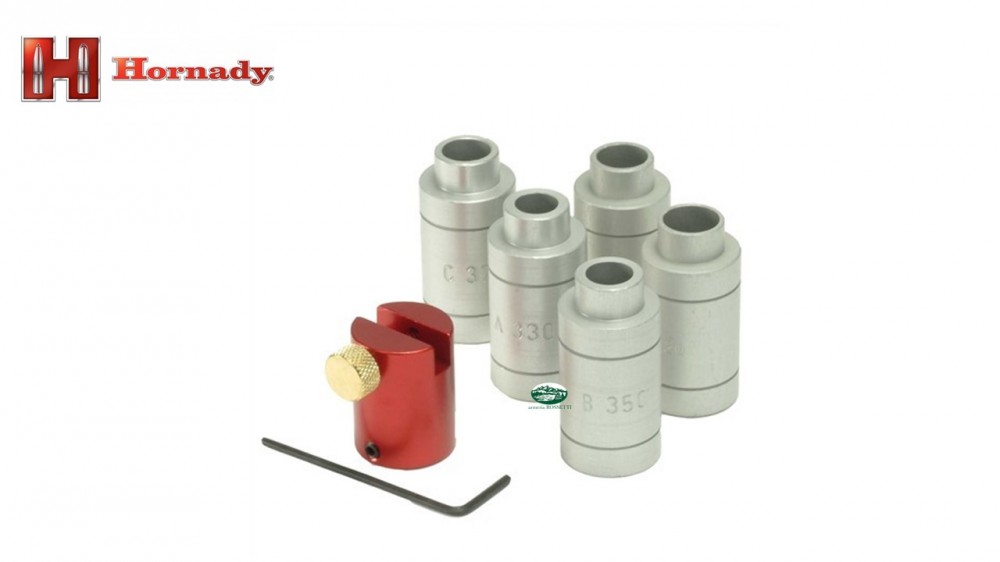 Le cinque boccole fornite con il comparatore dell’head space Lock-n-load consentono di misurare la maggior parte dei calibri a collo di bottiglia, dal .17 Remington fino ai magnum cinturati.